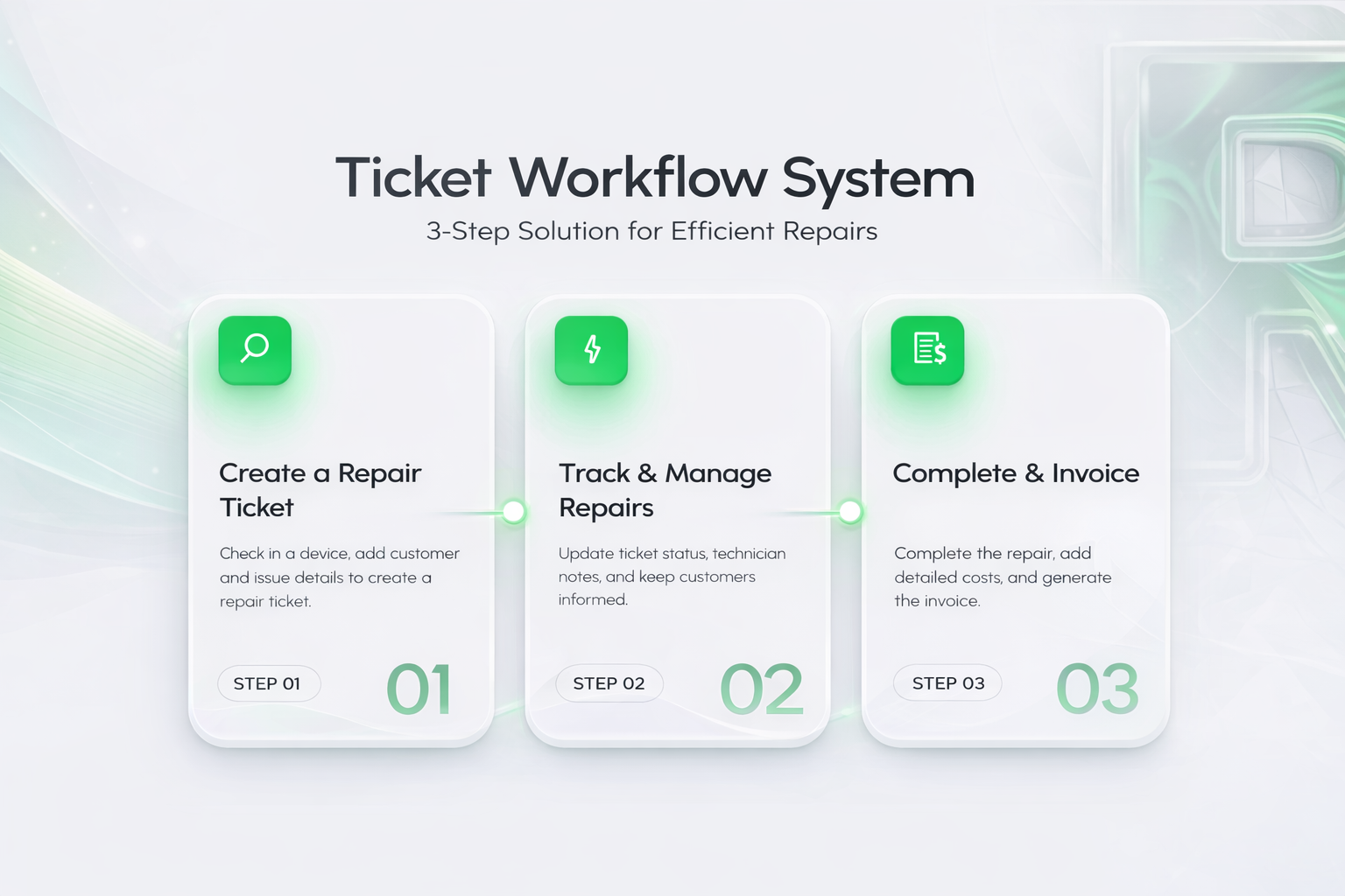 From ticket creation to repair completion and payment, RepairTicket organizes the entire repair process into one simple and efficient system.