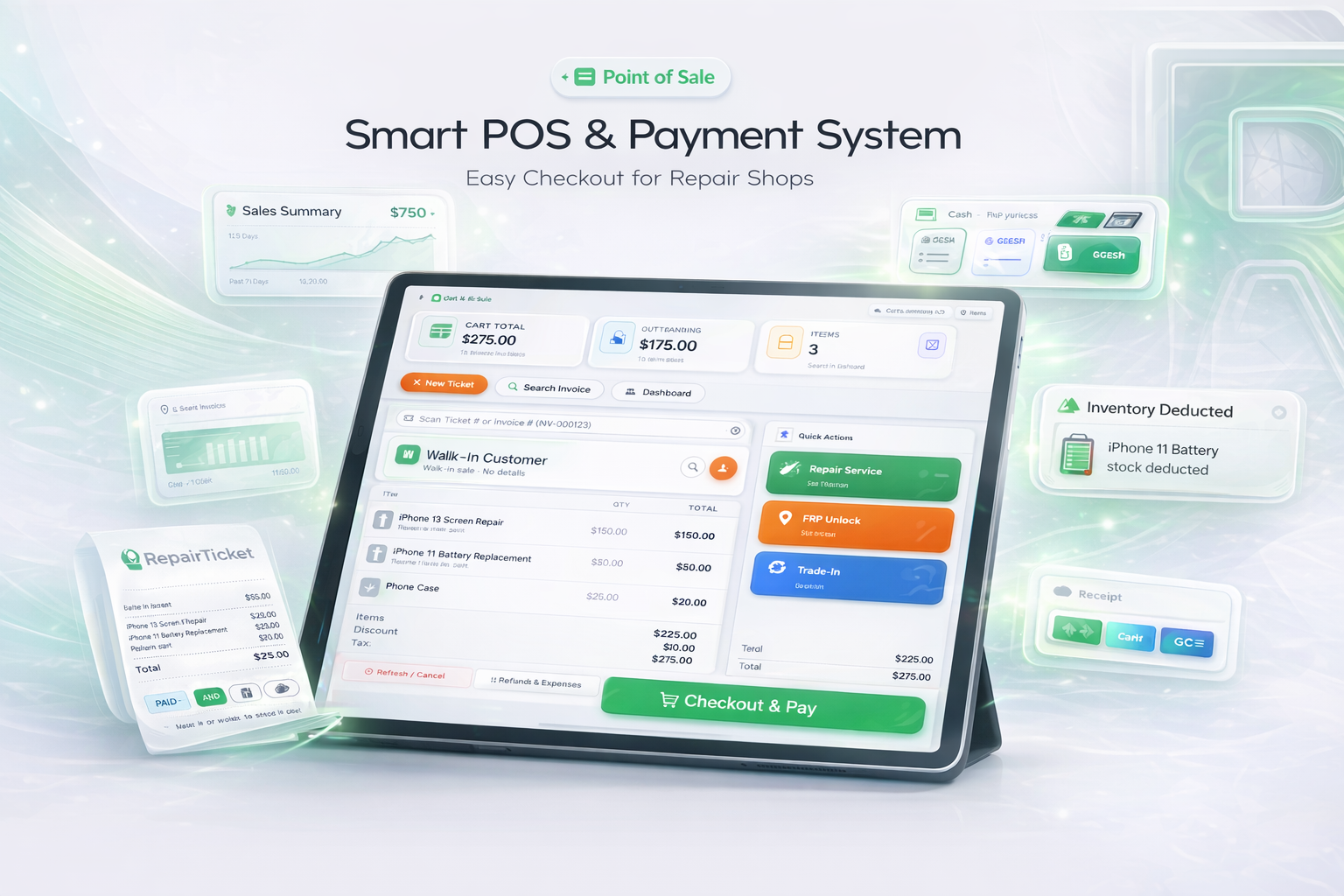 Manage repair tickets, customers, inventory, POS sales, and invoices in one powerful platform built specifically for repair businesses.